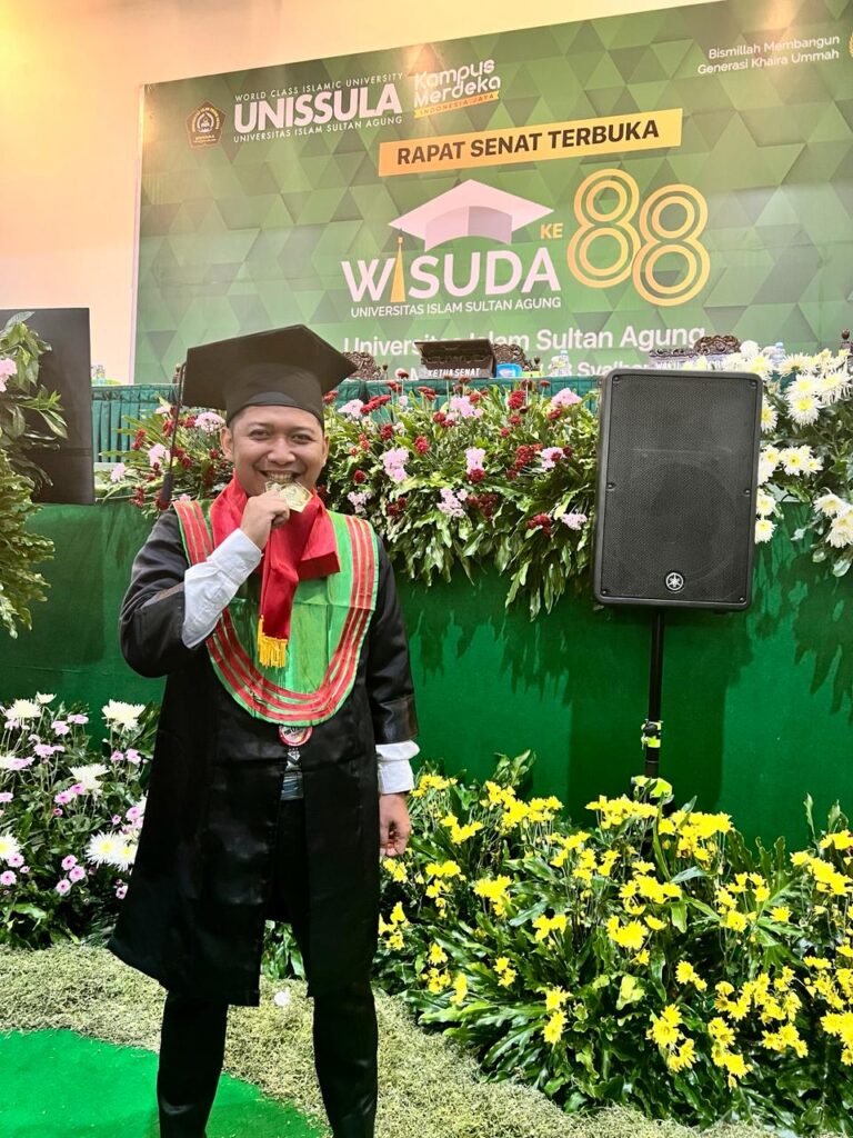 Prestasi luar biasa dan membanggakan tersebut diraihnya usai 2 tahun mengenyam pendidikan S3 Ilmu Hukum di Universitas Islam Sultan Agung (Unissula) Semarang.