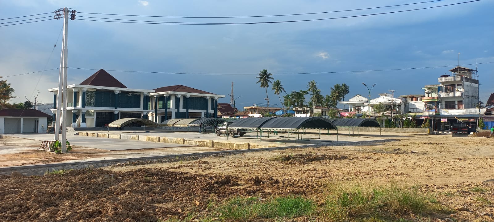 | MEGAH: Pemasangan tenda untuk para pedagang Pasar Ramadhan tahun 2025 di Depan Gedung Dekranasda Balangan - Foto Dok MC Balangan |
